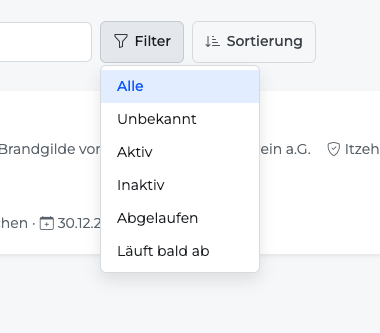| Status | z. B. „Aktiv“, „In Bearbeitung“, „Abgelaufen“ (farblich hervorgehoben) |