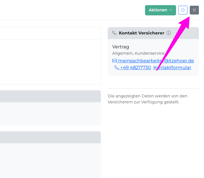 | Kontakt Versicherer | Ansprechpartner und Kontaktmöglichkeiten des Versicherers |